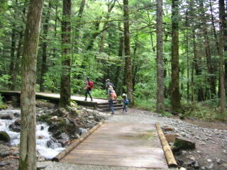 小川の橋を渡ります。