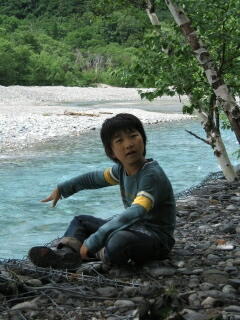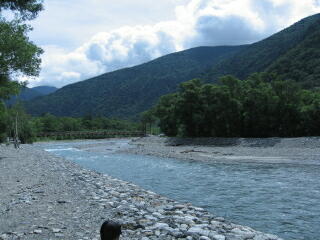 浅くて幅広の川は水底の石が透けてみえてとても澄んで見えます