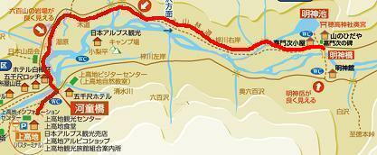景色をゆっくり楽しんだあとに折り返し地点の明神橋です