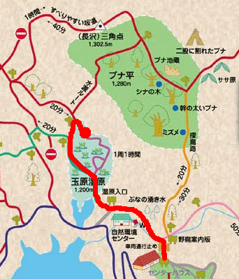 玉原湿原の中で水源ルートに近い折り返し地点は木道が一瞬無くなります。